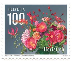 Anfangs Mai ist eine Briefmarke zum 100 jährigen Bestehen des Schweizer Floristenverbandes “florist.ch” erschienen, welche sich wunderbar dazu eignet, liebe Grüsse an Ihre Verwandten oder Freunde zu begleiten: